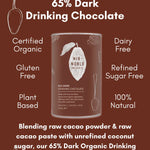 65% Cacao Organic Drinking Chocolate offers a bold, dark and creamy chocolate experience.