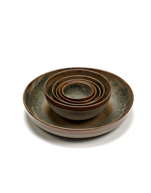 Surface by Sergio Herman for Serax is a stunning series of stoneware dishes with three different looks: Camo Green, Rusty Brown and Indi Grey. 'I am of the opinion that different sizes and shapes all have their own function. So in order to stimulate creativity, we made the series as extensive as possible with cups, plates, bowls and dishes in all sizes, from low to tall, and from small to extra-large. A beautifully served meal makes it taste even better!'