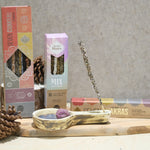 Place a incense line / herbal smudge bomb on the terracotta incense burner censer, ignite it with a match or lighter in a ventilated environment. Gently blowing out the flame when lit.