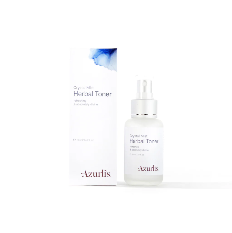 use the Crystal Mist Herbal Toner as a toner after cleansing, exfoliating cream or as a refreshing burst of moisture on hot days. Spray some of the toner on a pad of cotton wool and place it over your eyes, for a wonderful rest of your eyes and soul. Use it also as an excellent eye make-up remover. Or spray directly onto your skin or on the palm of your hand, then pat gently until absorbed prior to applying either the Intensive Moisturising Day Cream, the Soul & Skin Nourishing Night Cream, or any of the Azurlis™ Natural Botanical Skin Care eye products.