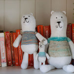 • Hand knitted with a mix of acrylic and cotton yarns
