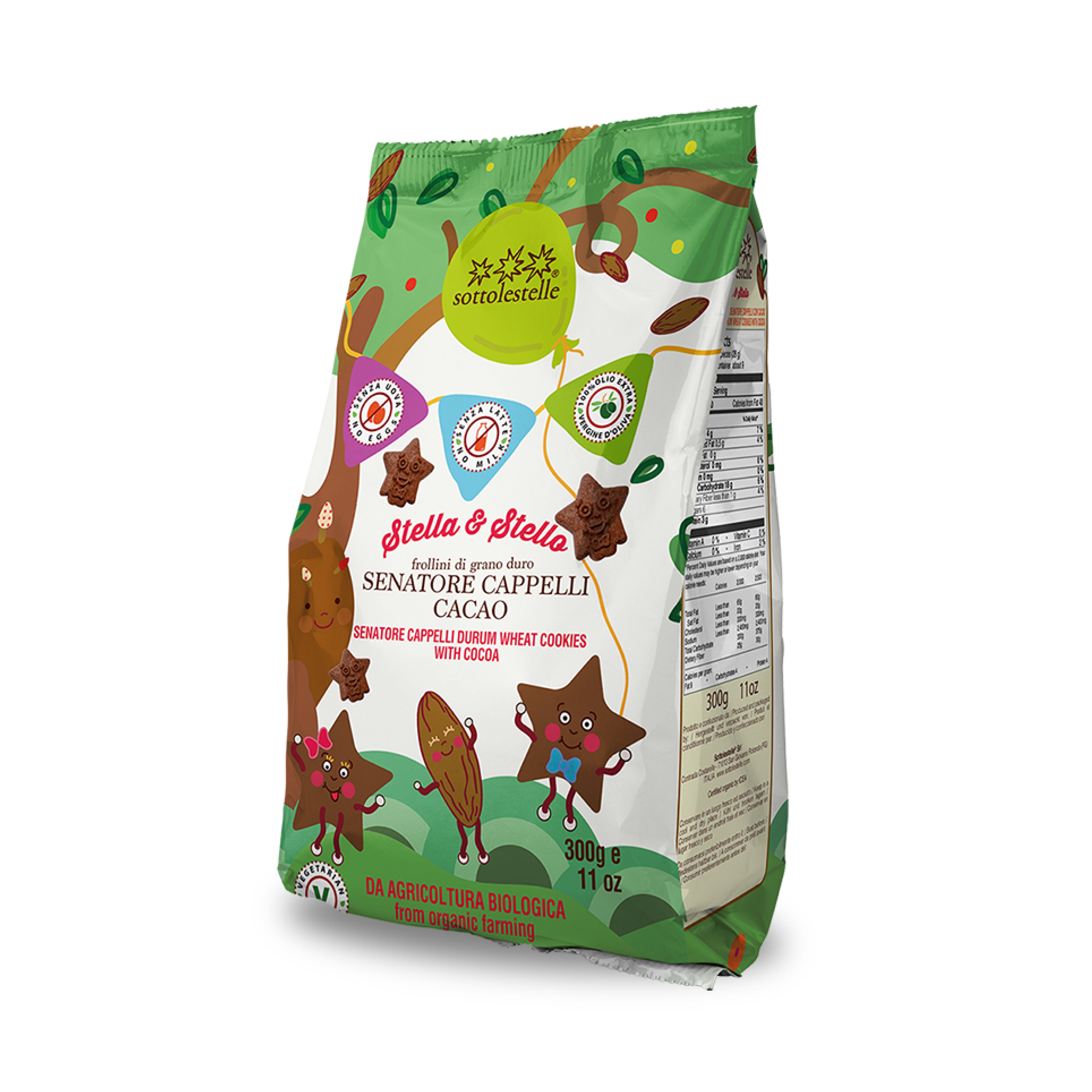 Stella & Stello Biscuits is a fun biscuit line designed for the little ones. Have fun together during breakfast by inventing fantastic stories and tales. All biscuits are made with Italian flour of the Senatore Cappelli variety, extra virgin olive oil and made tasty with cocoa. The quality is monitored at every stage of the production process to offer an excellent and transparent product. Fantastic adventures with two cute little stars await you!