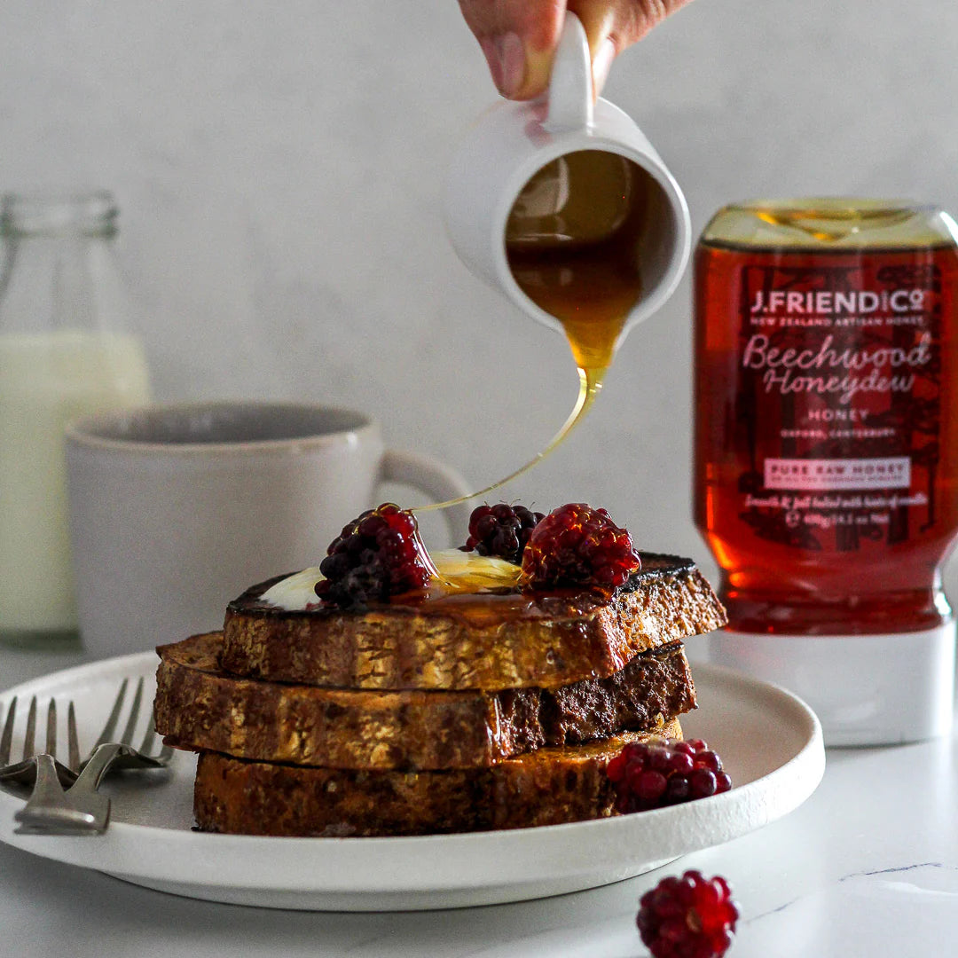 Beechwood Honeydew is a naturally dark amber liquid honey, resembling golden syrup, with a bold pungent nose. With one of the highest levels of antioxidants of all New Zealand honeys, it contains high levels of oligosaccharides which are helpful in maintaining and promoting beneficial bacteria in the gut (probiotic bacteria).