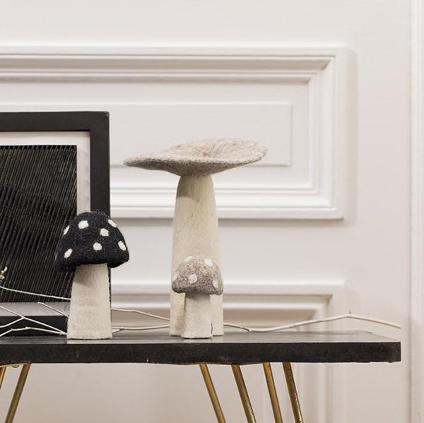 The felt Mushroom is the star of the collection, a must-have in the home! Whimsical and fun, a decorative touch the whole family will enjoy. The mushrooms are cute in children's bedrooms, in the library, or on top of a dresser or occasional table.