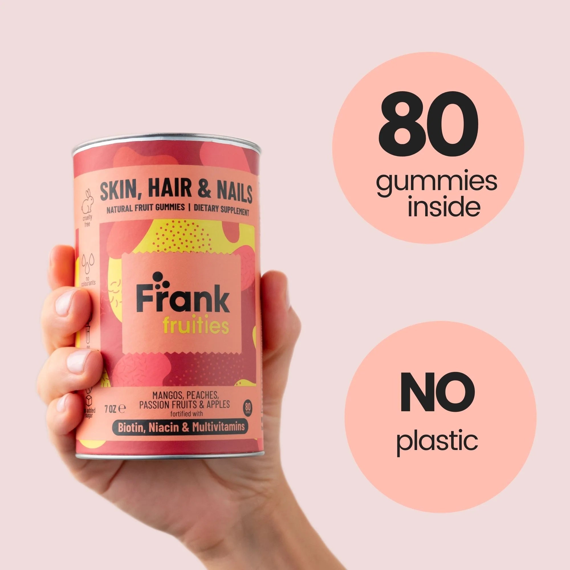 • No added sugar, no gelatin, no preservatives, no colorants, cruelty-free, no plastic.