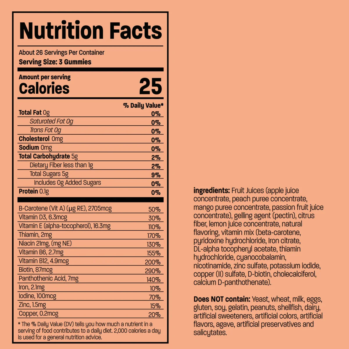 The recommended serving size is 3 gummies per day.