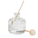 Natural room fragrance glass bottle with a blend of essential oils and natural mixture for improved fragrance diffusion. Sealed stopper and 2 natural pine wood sticks.
