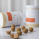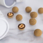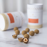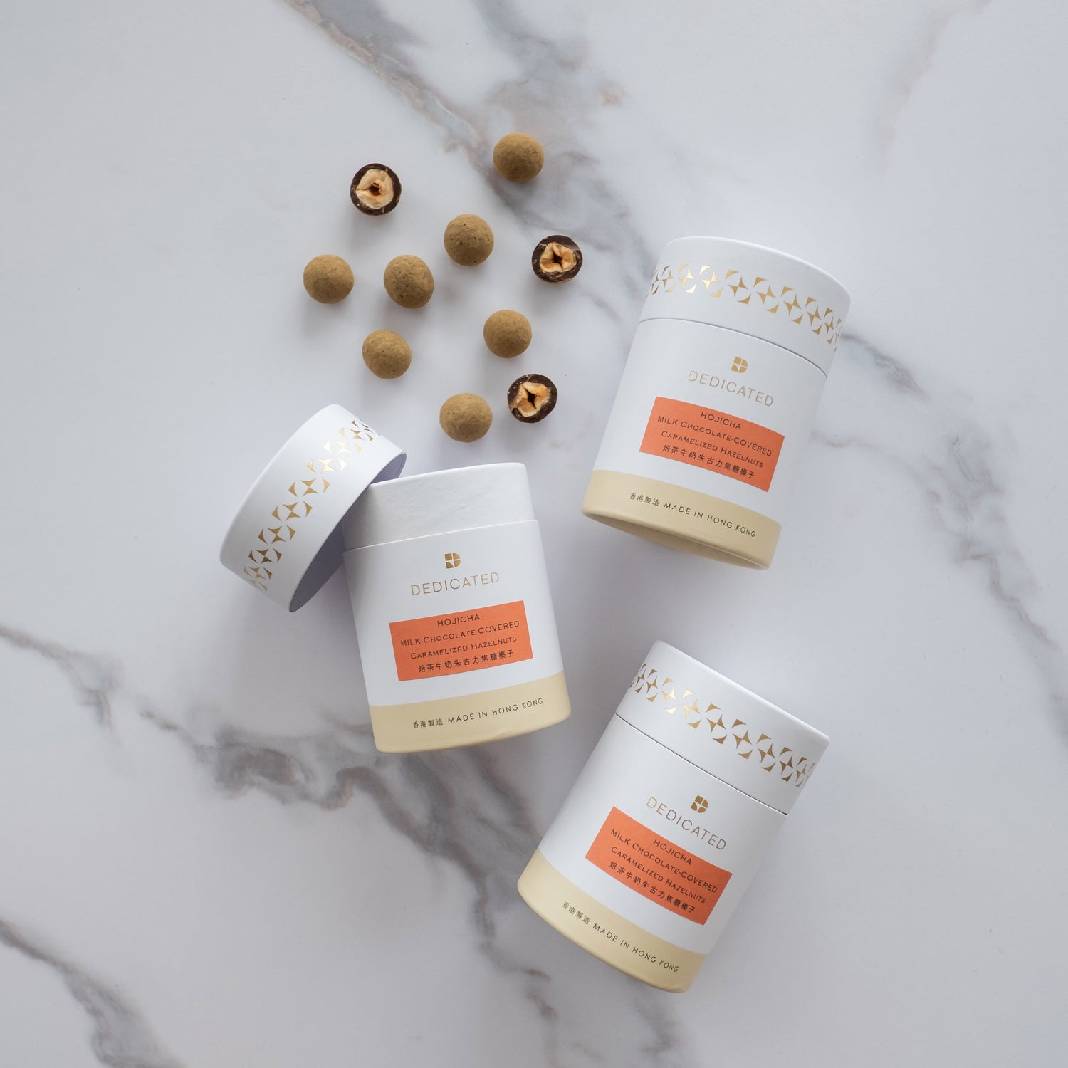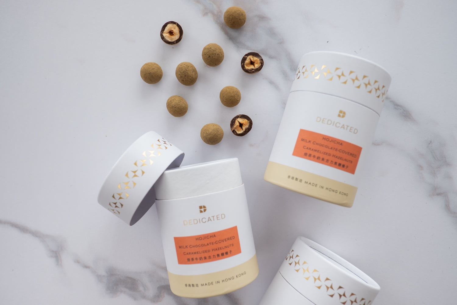 選用高品質的榛子,用焦糖包裹外層使其香甜鬆脆。 然後在焦糖榛子上,反覆地上塗上焙茶牛奶朱古力,形成厚厚的朱古力層。 最後在焙茶牛奶朱古力焦糖榛子外層,撒上來自日本的優質焙茶粉。