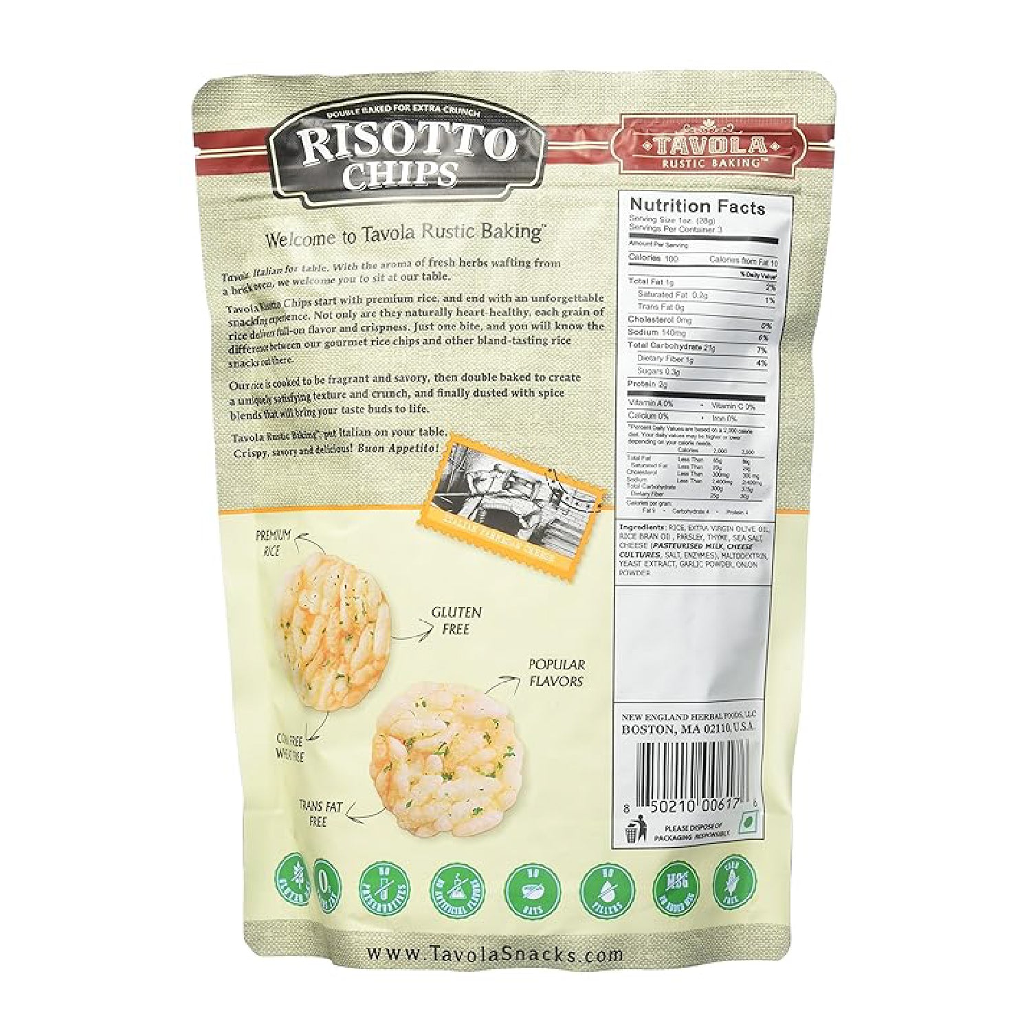 Tavola香脆米餅是正在醞釀中的現代義大利經典,優質美味香脆米餅能完美取代味道平淡的健康米餅,天然有益心臟健康。經過烘焙後每一粒米都充滿風味和鬆脆感。將米飯煮至香噴噴,然後雙重烘烤以獲得完美的鬆脆口感,並與義大利巴馬臣芝士的美味相得益彰。