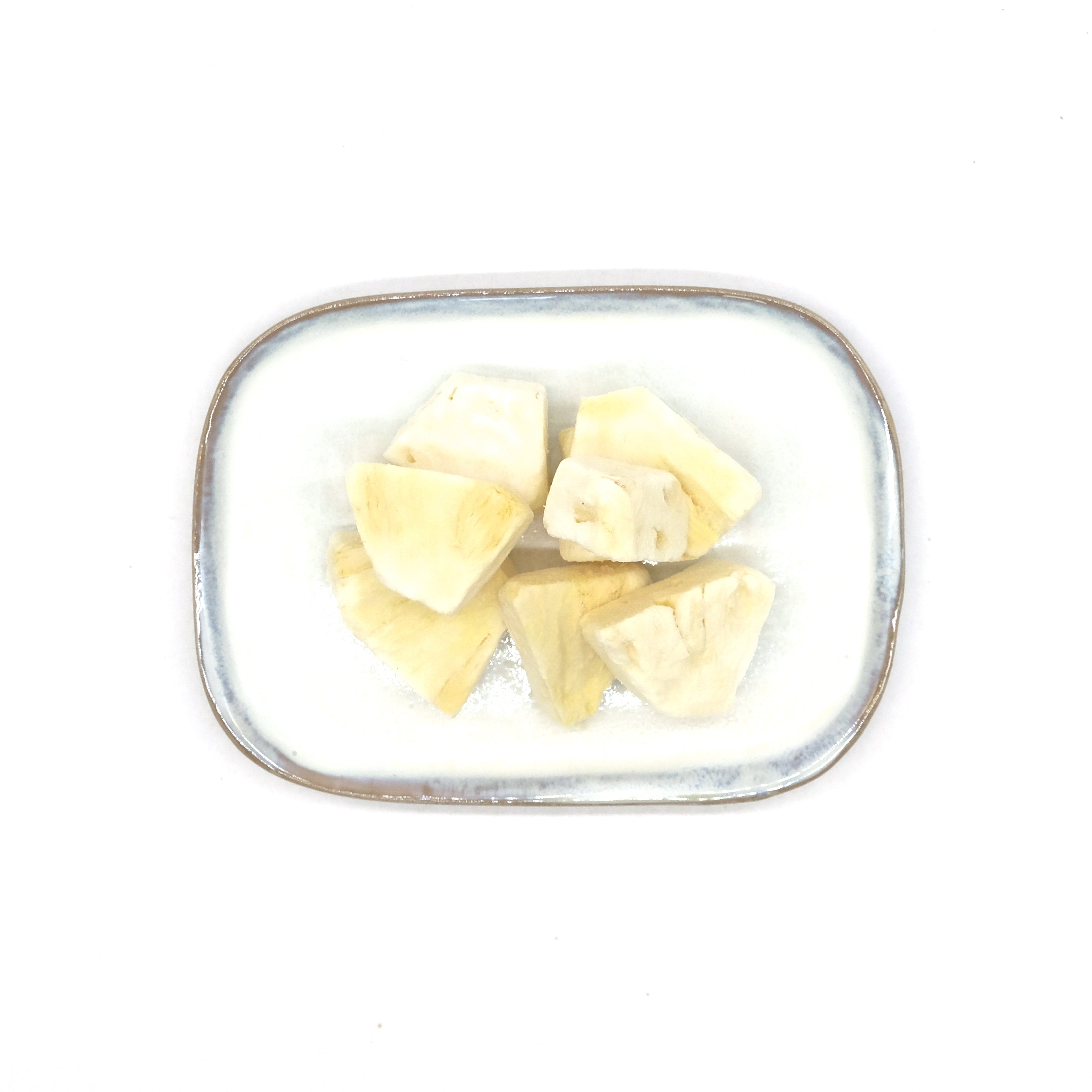 這些菠蘿被切成薄片並冷凍乾燥,去除了大部分水分,並增加了嘎吱嘎吱的口感,讓它們絕對無法抗拒。 這些只是沒有甜味劑或防腐劑的菠蘿,具有天然的甜味。 略脆、多汁的凍乾菠蘿是一種美味的水果餡料和小吃。凍乾菠蘿尤其以其柔軟的質地和溫和的味道成為健康的手指食品。
