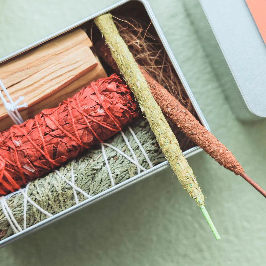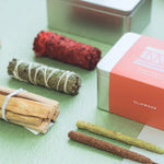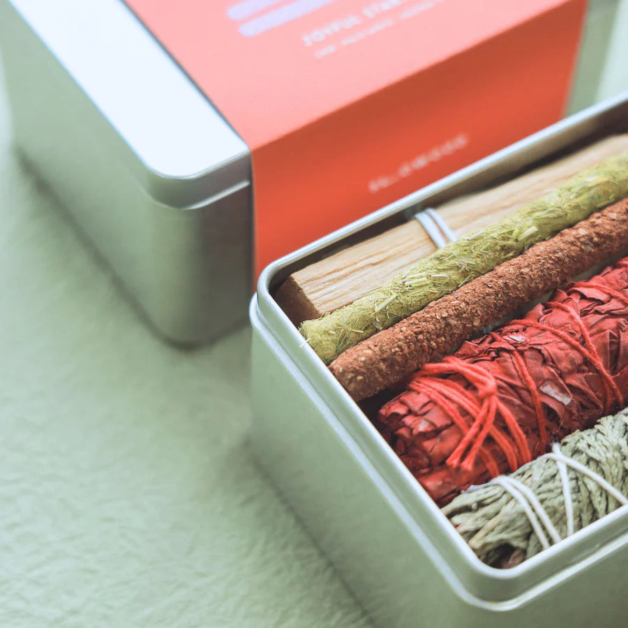 用火機點燃線香或鼠尾草,讓其燃燒 30 秒至 1 分鐘後輕輕吹熄。使用後,請將香棒放入金屬、玻璃或陶土製的耐火碗中,以確保安全。