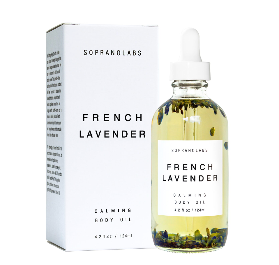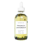 每瓶法國薰衣草鎮靜潤膚油容量為4.2液量盎司 (125毫升),帶有一個方便的緩衝倒出口、鋁蓋和可回收的盒子。