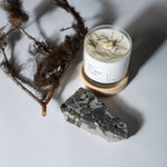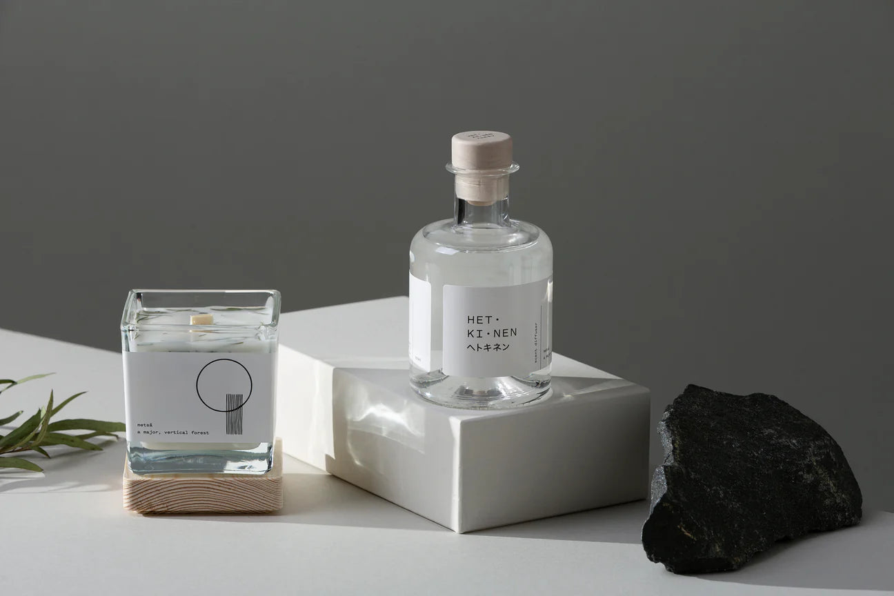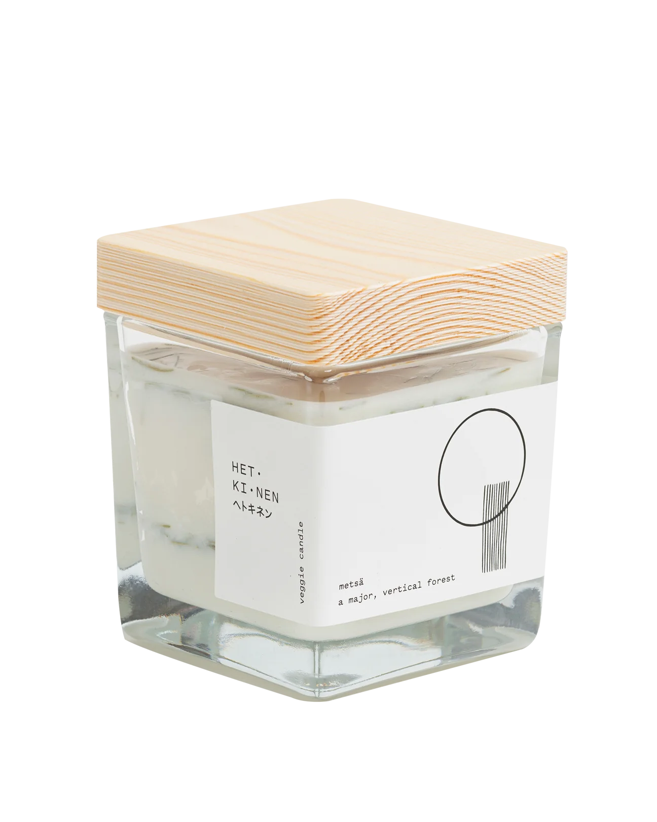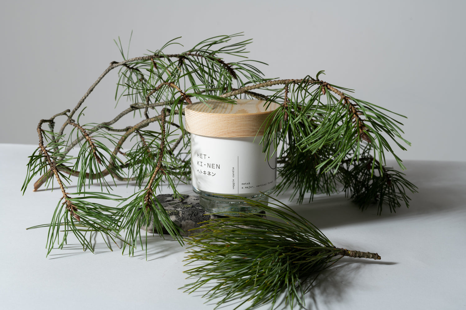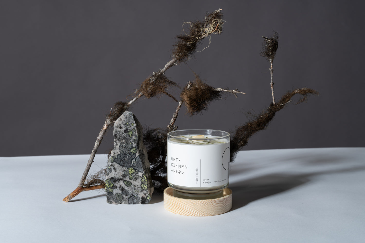 由天然油菜籽和大豆蠟製成的純素蠟燭,配有芬蘭白楊木燭芯,及含有芬蘭冷杉樹脂。
