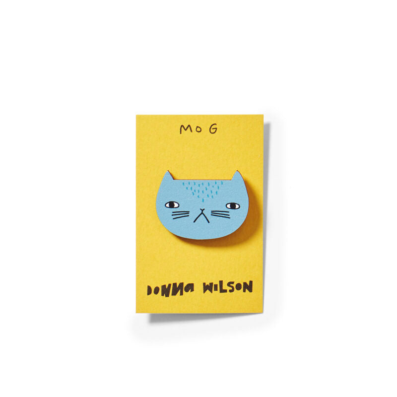 印有一隻脾氣暴躁的藍貓的木製別針徽章。