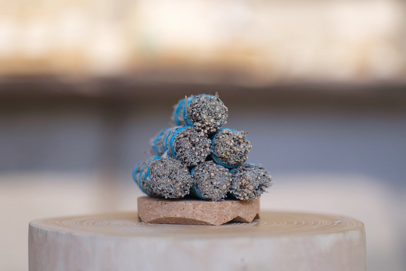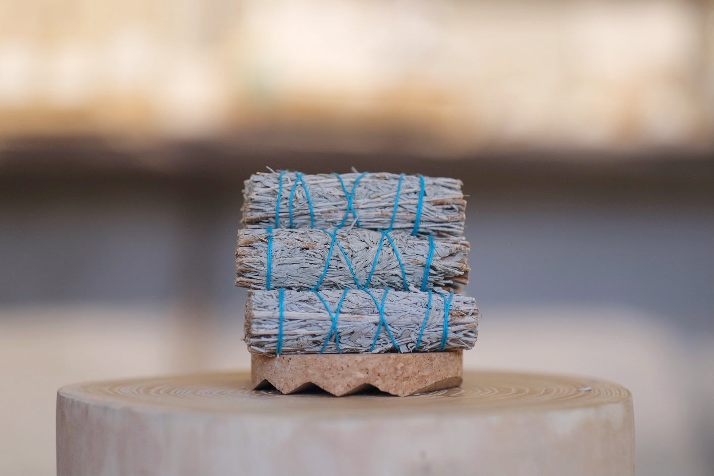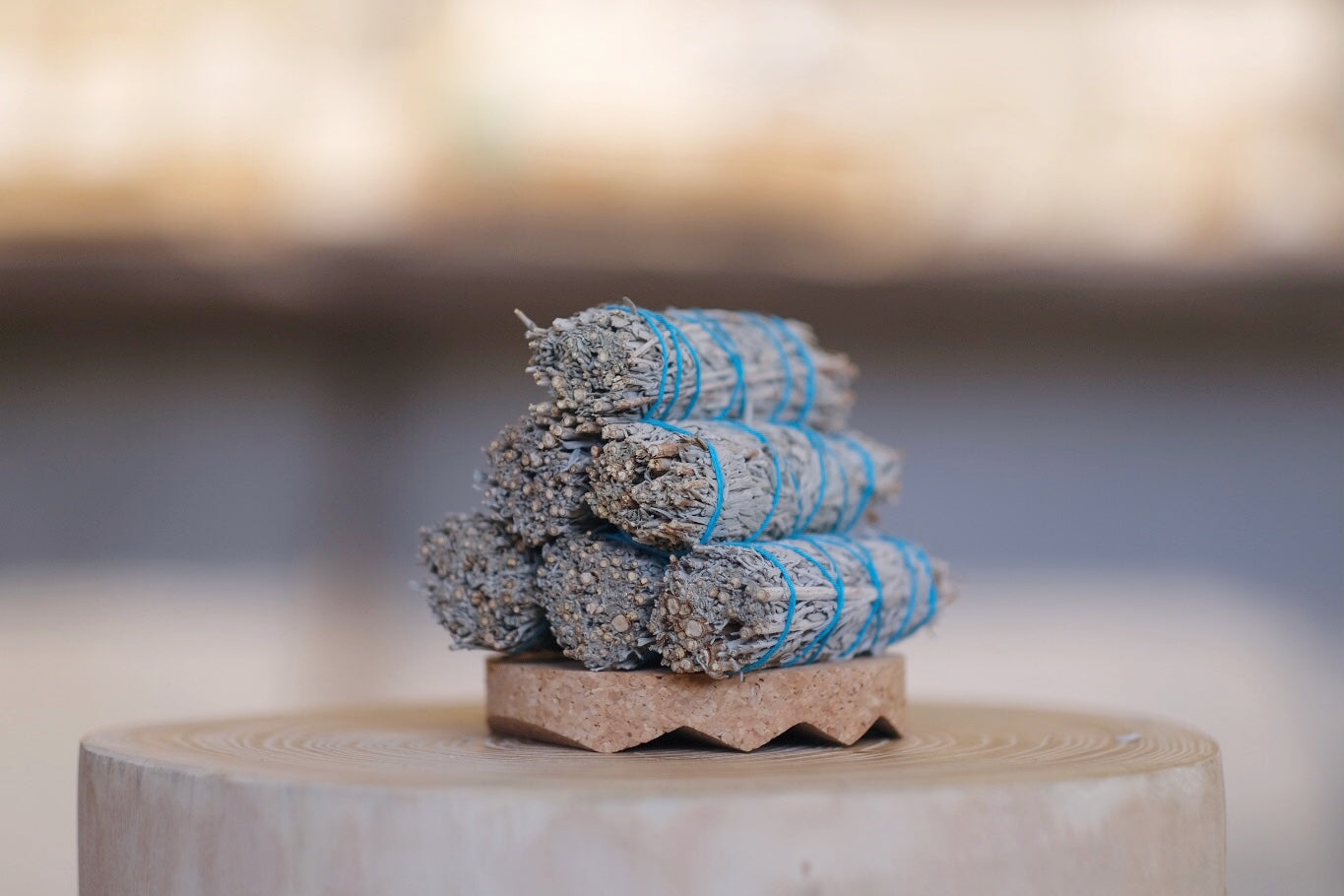 在通風環境下用小心地點燃香束一端。輕輕吹熄火焰並將其放在防火容器或薰香座上。