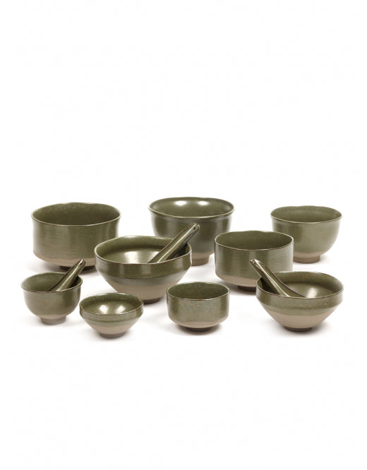 MEAL x 3 搪瓷石器系列,包含三種形狀不同的湯匙和大小不同的和碗。最小的碗是最適合斟茶用的完美容器。此系列還有中號,適合放湯;大號則適合放些主菜。隨您心意配搭不同顏色、形狀、大小的碗子,當然還有您最愛的食材!