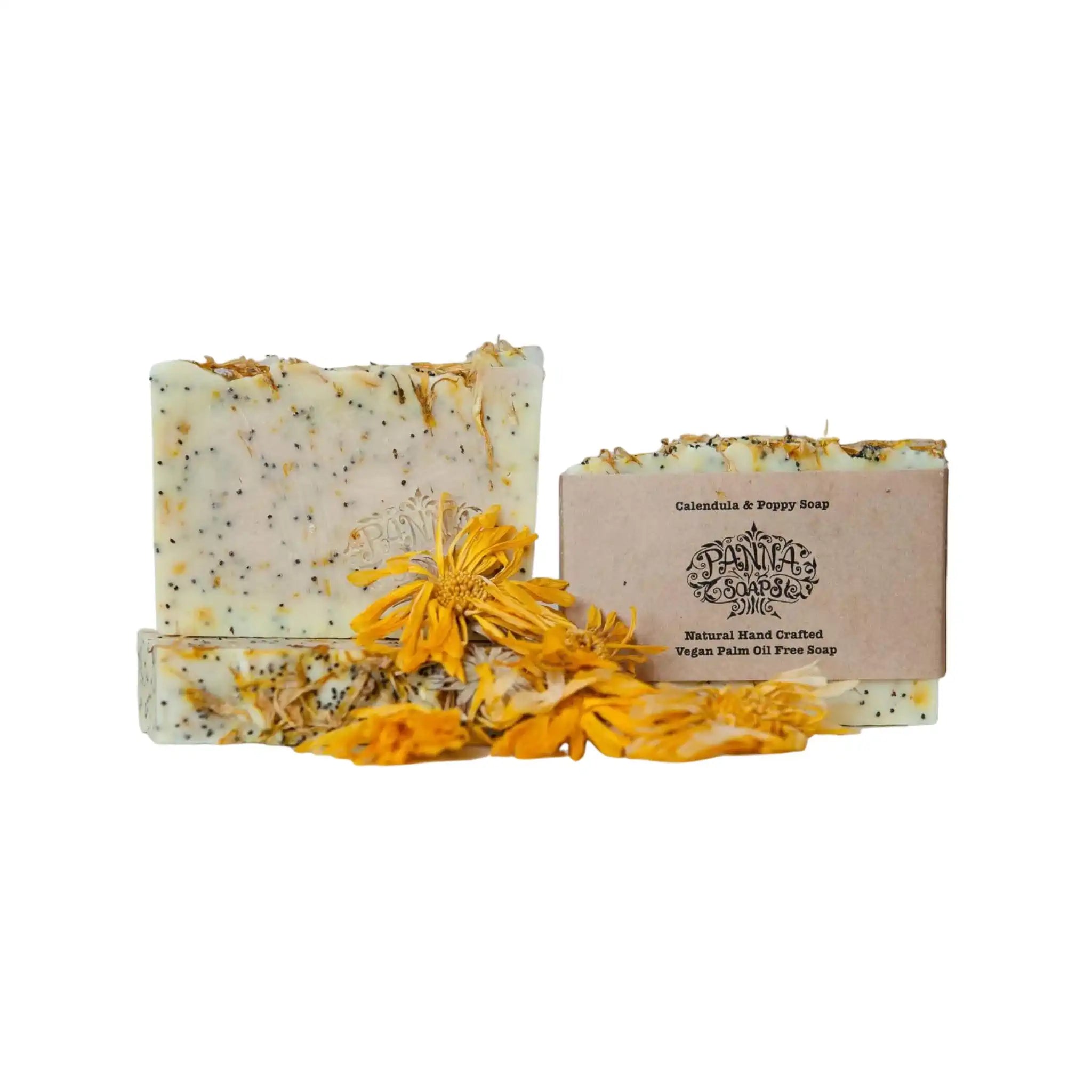 金盞花以其藥用特性而聞名,當中的花瓣和罌粟使這款手工皂成為一款出色的舒緩皂。