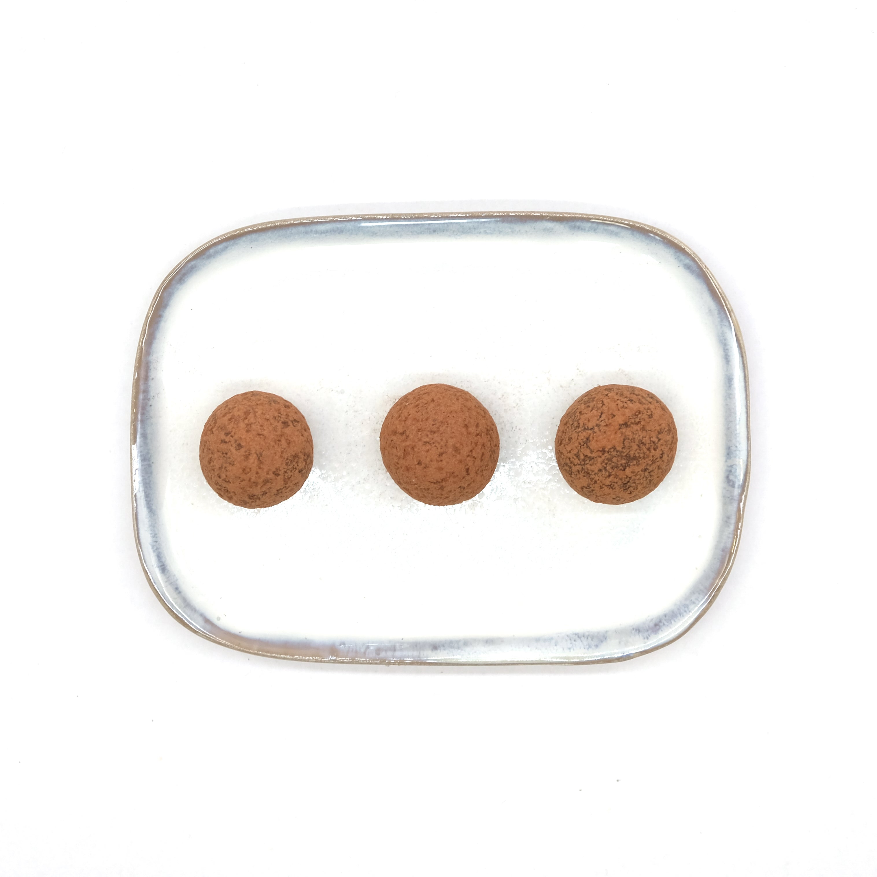 醇滑濃厚的黑朱古力厚厚的包住低溫烘焗原粒夏威夷果仁,面層再裹上香濃可可粉。
