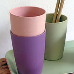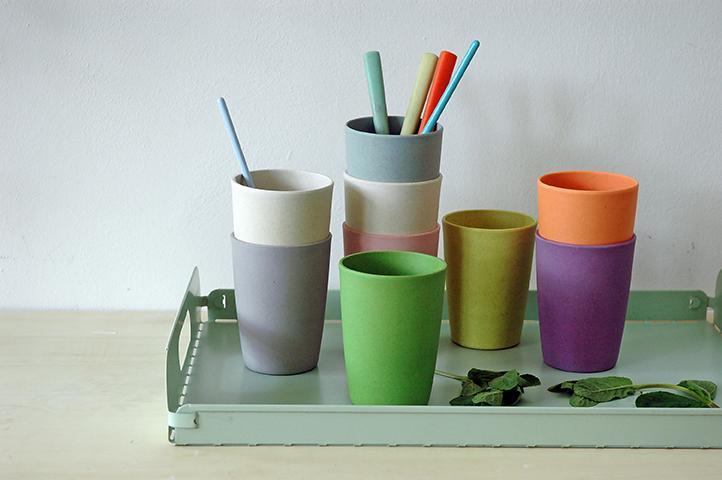 - 餐具由竹與粟米纖維製成,既環保亦可長期使用。