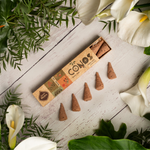 將塔香放在耐熱薰香座上,在通風環境下,用火柴或打火機點燃塔香頂部。燃點後輕輕吹熄火焰。