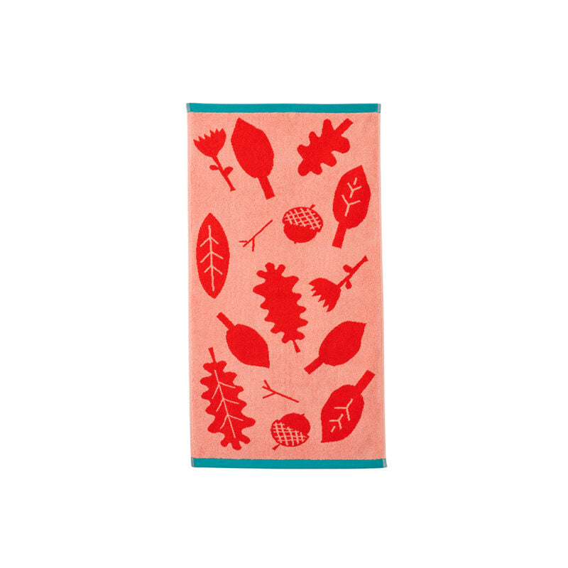 我們的小樹枝毛巾裝飾有紅色和粉色橡樹葉設計,帶有對比鮮明的綠松石飾邊,非常適合帶去健身房或去海灘游泳!
