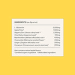 具功效的草本成分-生薑和洋甘菊,能夠舒緩並放鬆不適的胃部,消除腹脹,改善腸道健康,進而促進消化系統舒適。加上益生元蘋果纖維的協同作用,有助促進腸道菌叢健康平衡,減少過量氣體的產生,從而緩解腹痛和腹脹,全面呵護腸道健康。