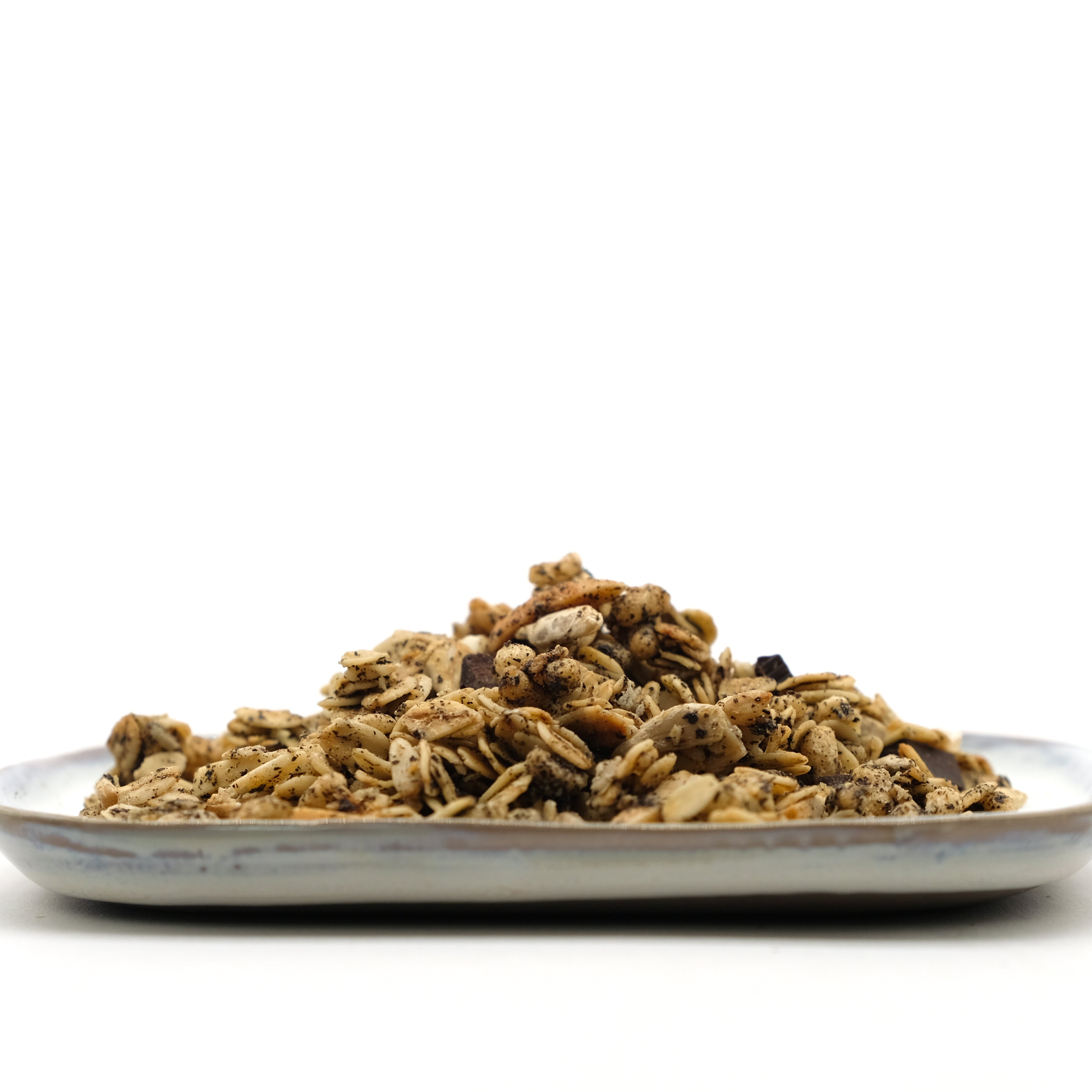 成分:原片燕麥、有機楓糖、有機椰子油、杏仁、有機葵花籽、有機脆米、70%黑朱古力粒、伯爵茶、檸檬皮