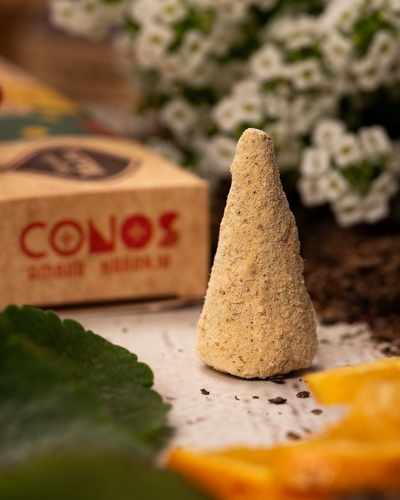 將塔香放在耐熱薰香座上,在通風環境下,用火柴或打火機點燃塔香頂部。燃點後輕輕吹熄火焰。