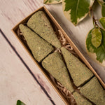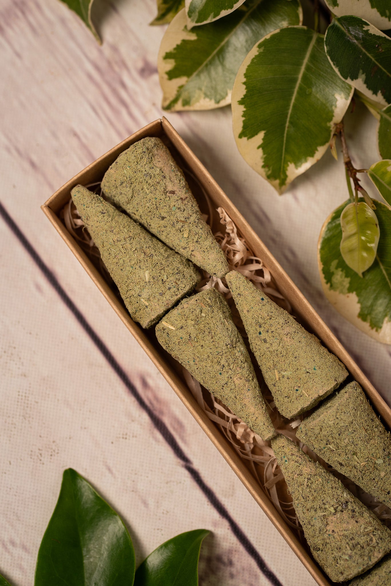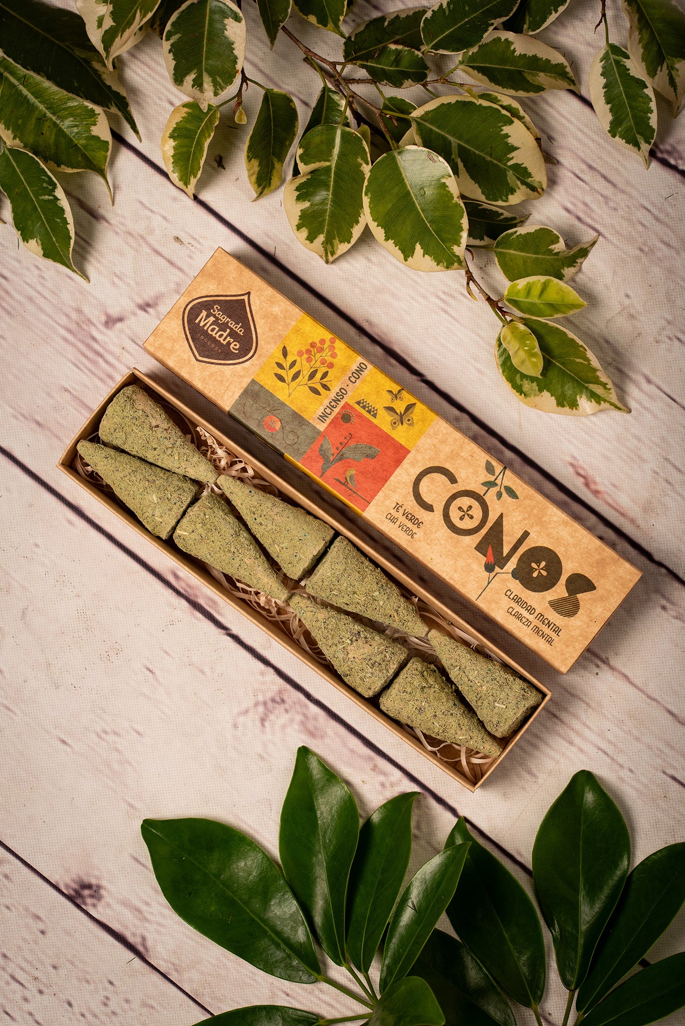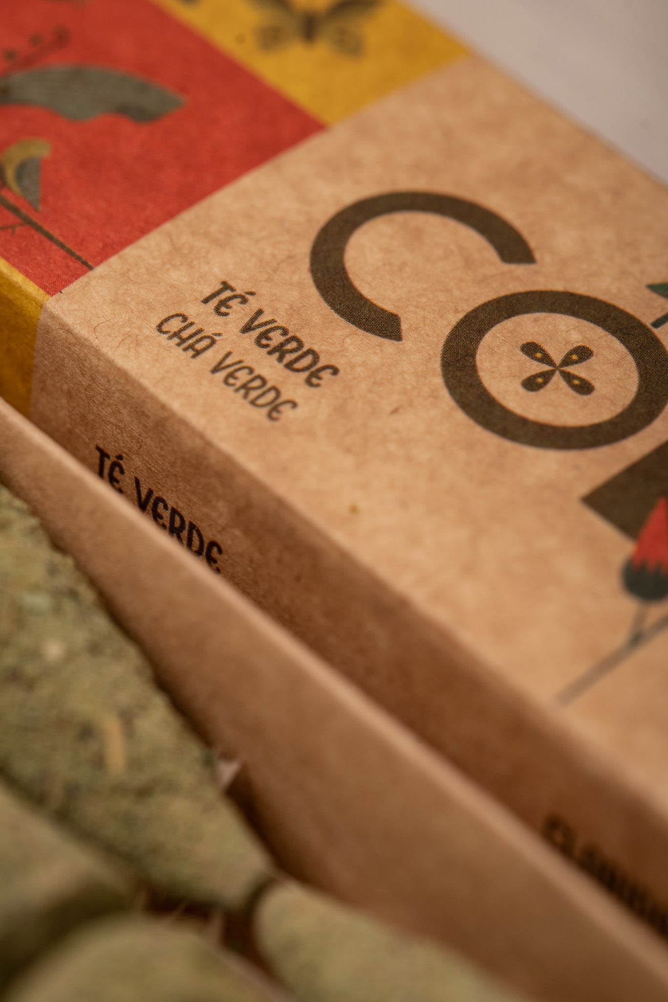 綠茶葉、濃縮綠茶油、水果生物質、雪松木、天然黏合劑和鹽