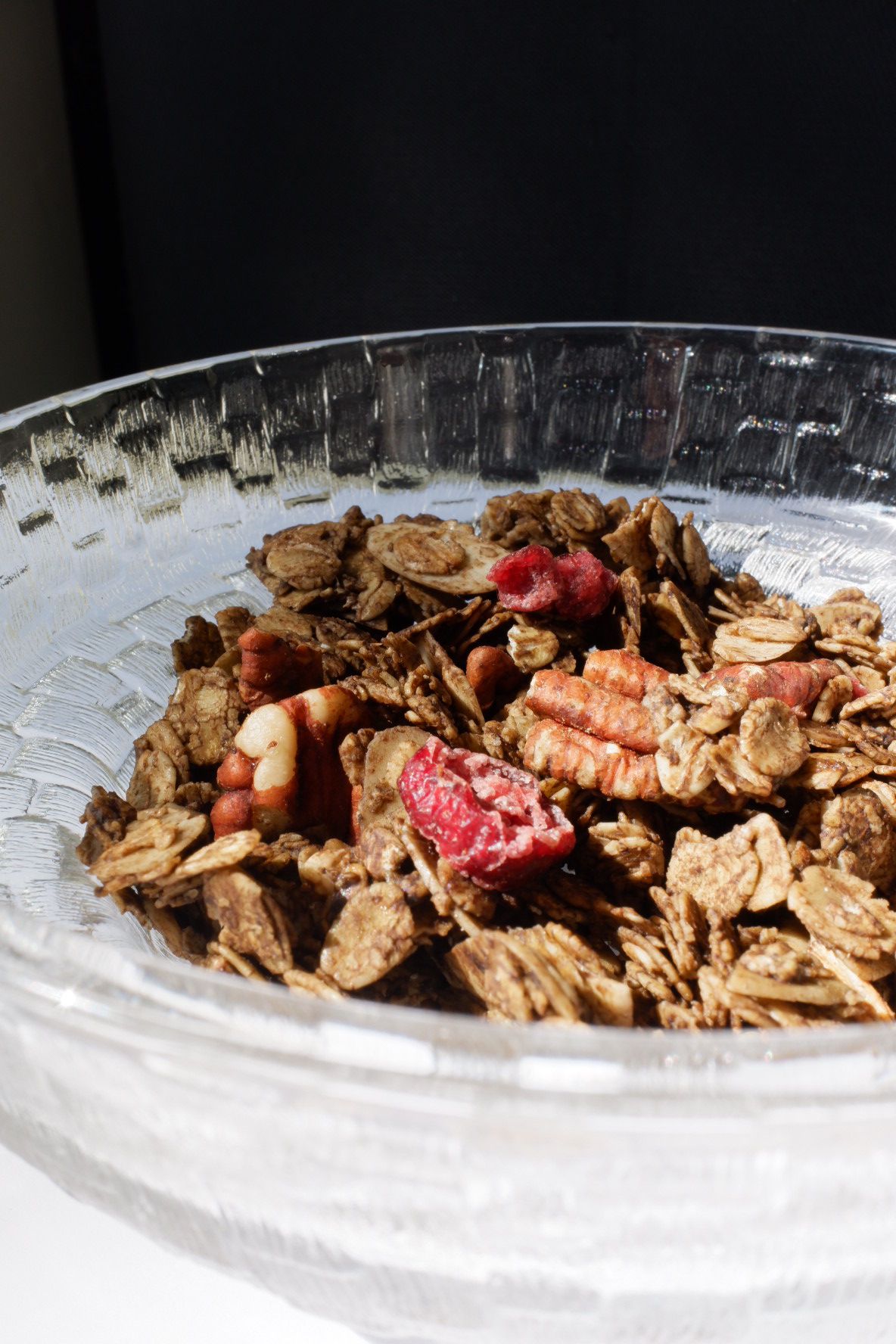 成分:原片燕麥、有機楓糖、有機椰子油、杏仁片、山核桃、有機蕎麥、大紅袍和紅莓乾。