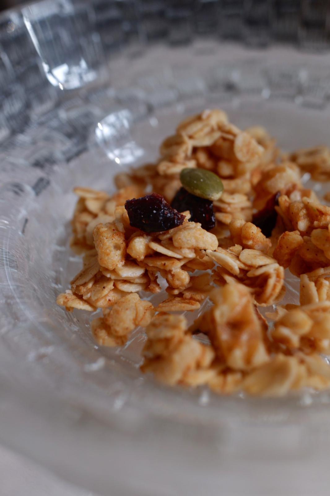 入口會嚐到淡淡香蕉的香味,配搭南瓜籽、脆米等等,口感鬆脆,還加入酸酸甜甜的紅莓乾減低飽膩感,推介配搭乳酪食用。