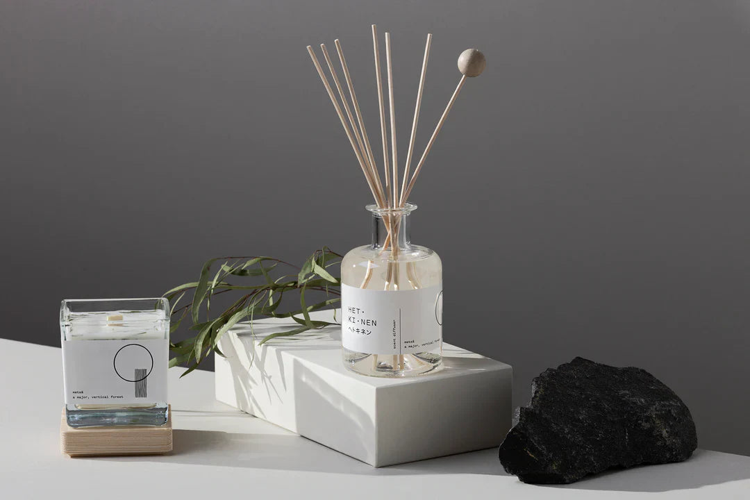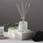 天然室內擴香玻璃瓶,混合了精油和天然混合物,有助升提香味擴散。包含玻璃瓶密封塞及7枝天然松木擴香棒,連同精美的包裝盒。