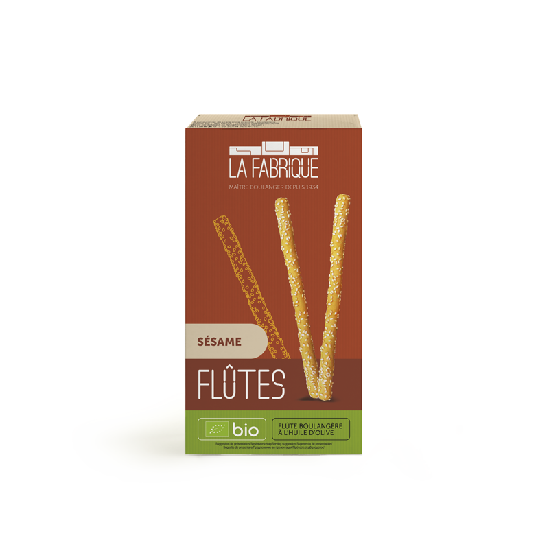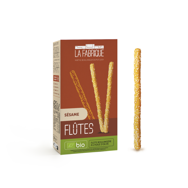 有機 Flûtes 芝麻和橄欖油,也稱為 Grissini,是美味、鬆脆的傳統義式麵包棒。上面覆蓋著烤芝麻,非常適合襯托出葡萄酒的風味,而且脂肪含量低。這款有機橄欖油芝麻義式麵包棒是家族企業 Cornu SA 開發的首批產品之一。