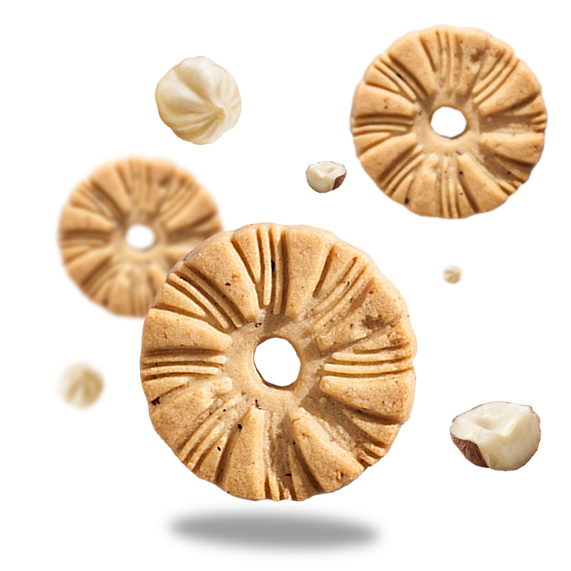 令人難以抗拒的榛果風味,使餅乾美味且獨特。由葵花籽油和純植物成分製成,不含雞蛋或牛奶。不含酵母可以增強餅乾的鬆脆度和成分的真實味道。為你帶來高品質的享受,讓你迎接美好的一天。