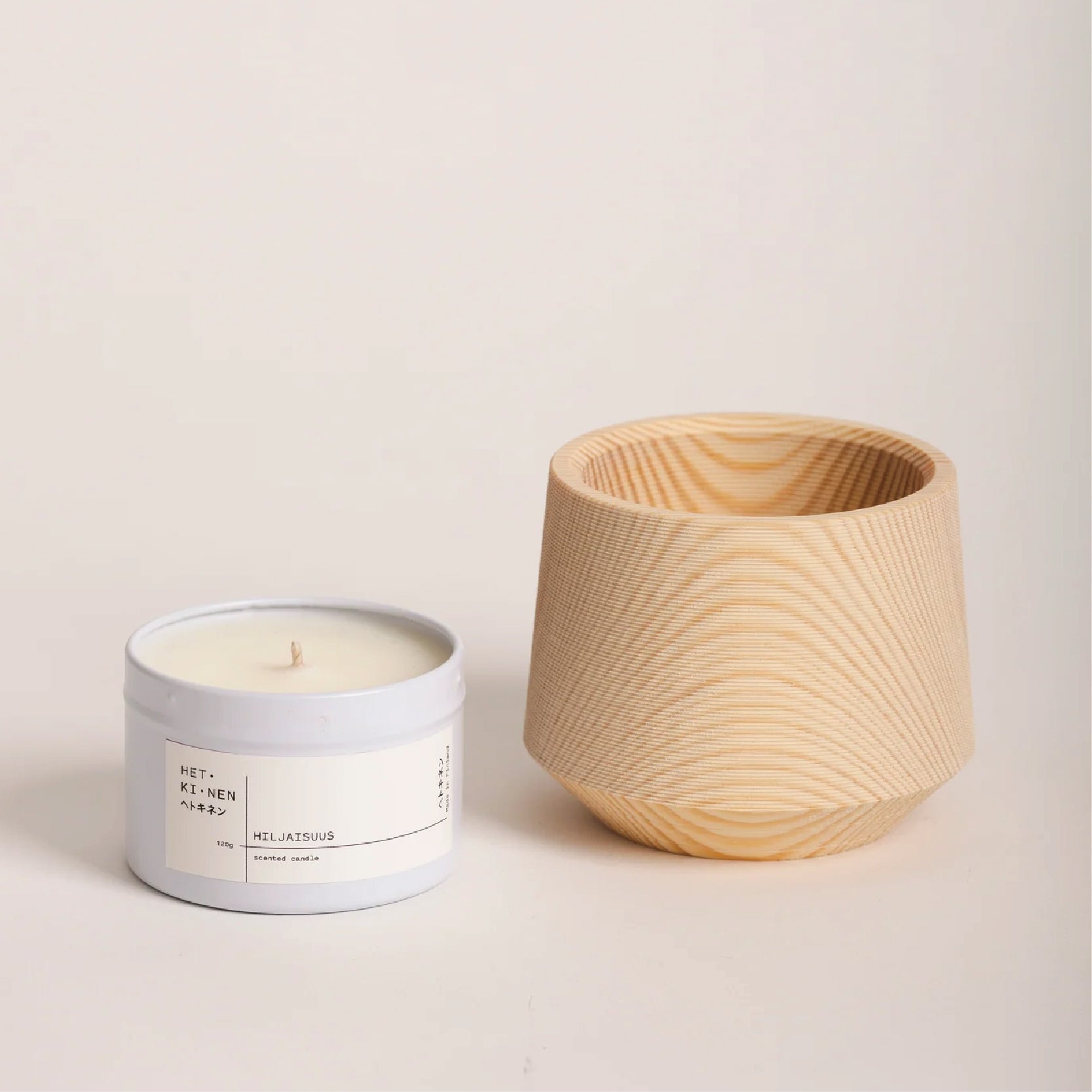 由芬蘭松木心材製成的燭台容器,整塊木材製成、無黏接縫處,耐用且美觀,可透過雙手觸摸來自森林的溫度,獨特設計為空間增添幸福感!環保可重複使用,為地球盡一份心力!