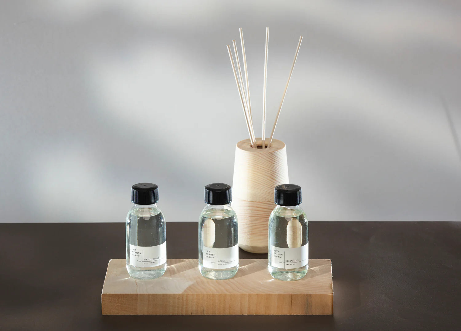 Hetkinen的室內擴香瓶富含天然純精油,瀰漫著香氣能提升家庭氛圍,對情緒也有正面影響,亦可作為精緻的家居裝飾。