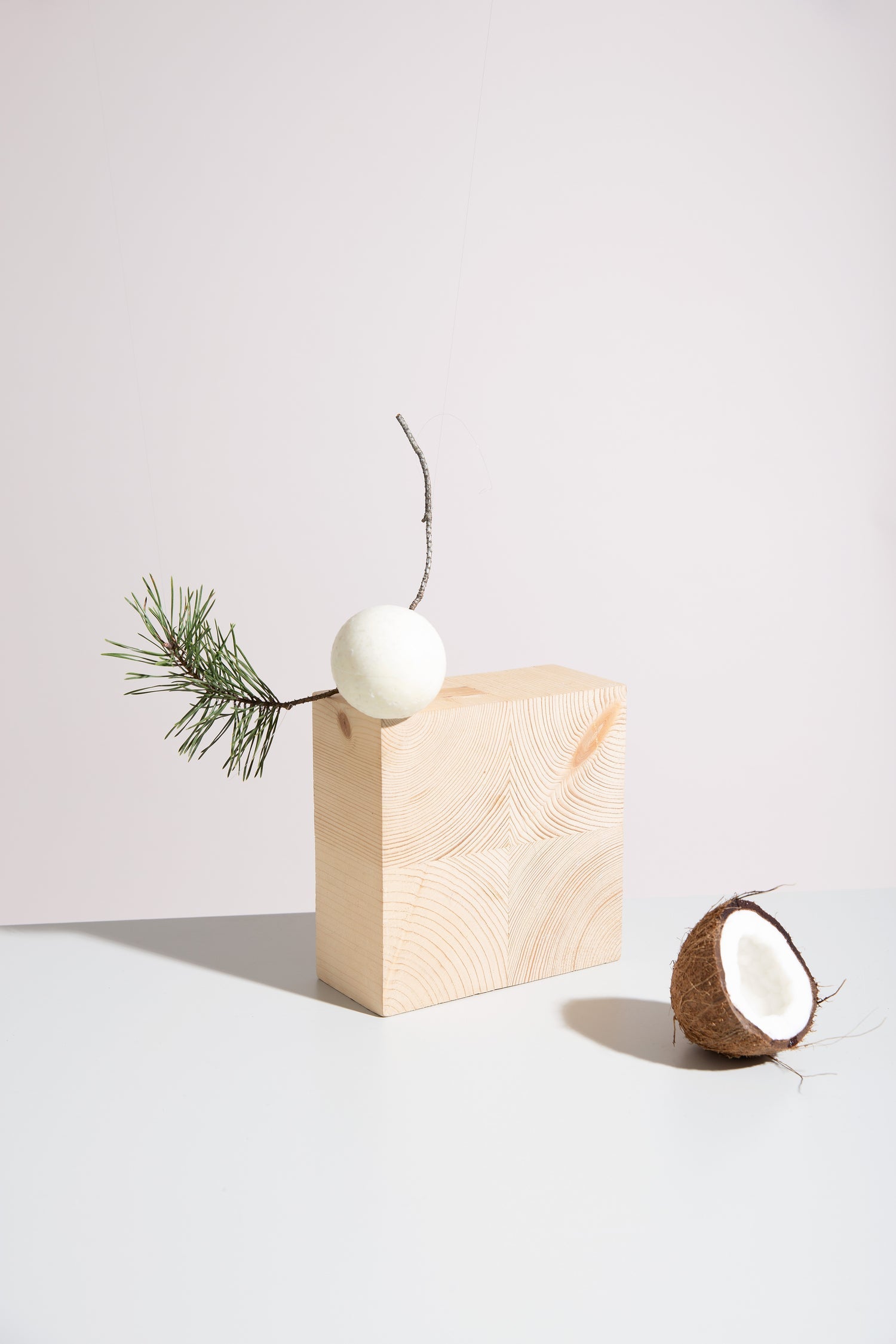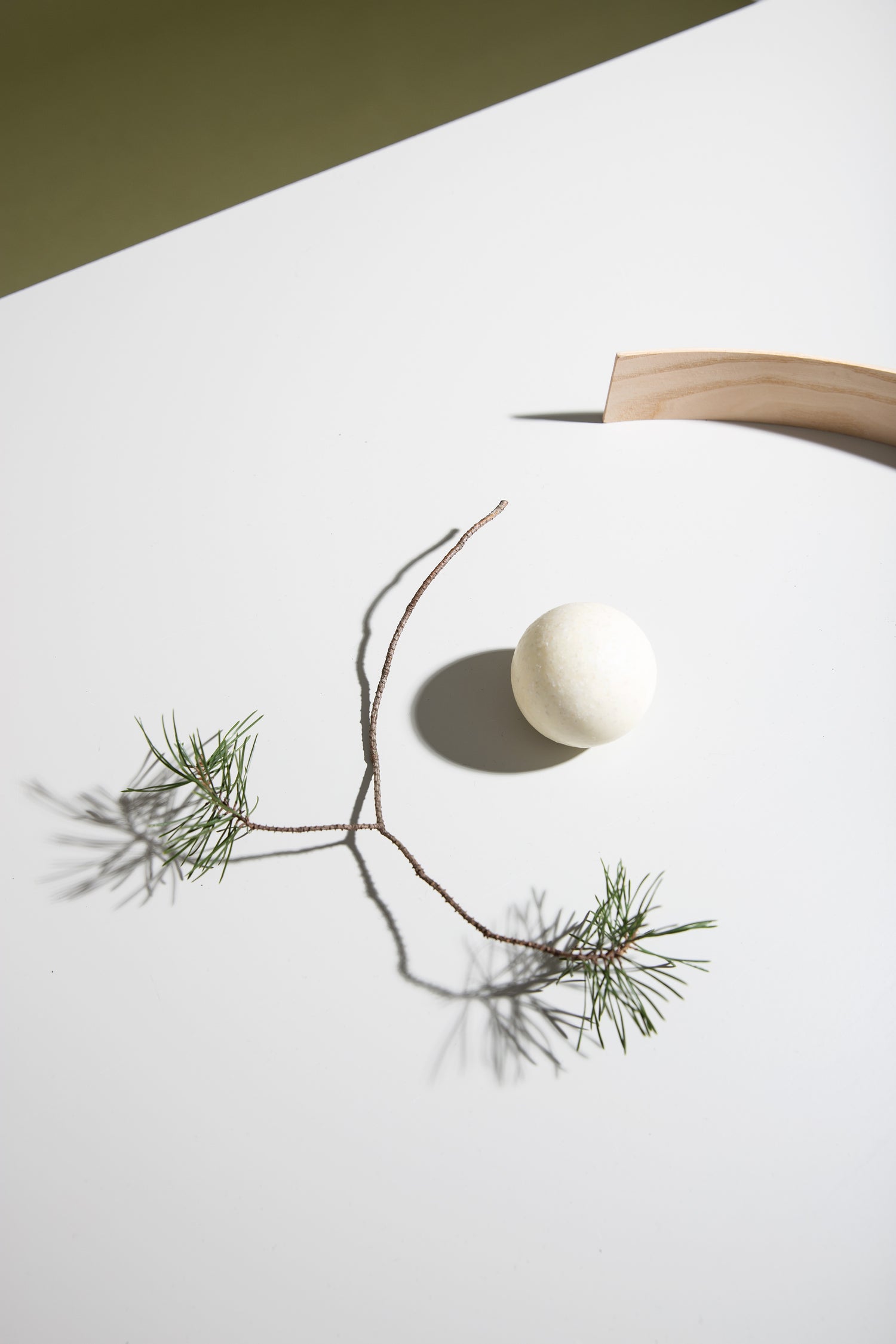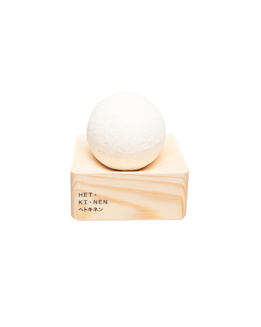適合日常使用的球體肥皂,海鹽以及來自松樹和薄荷的芳香精油。