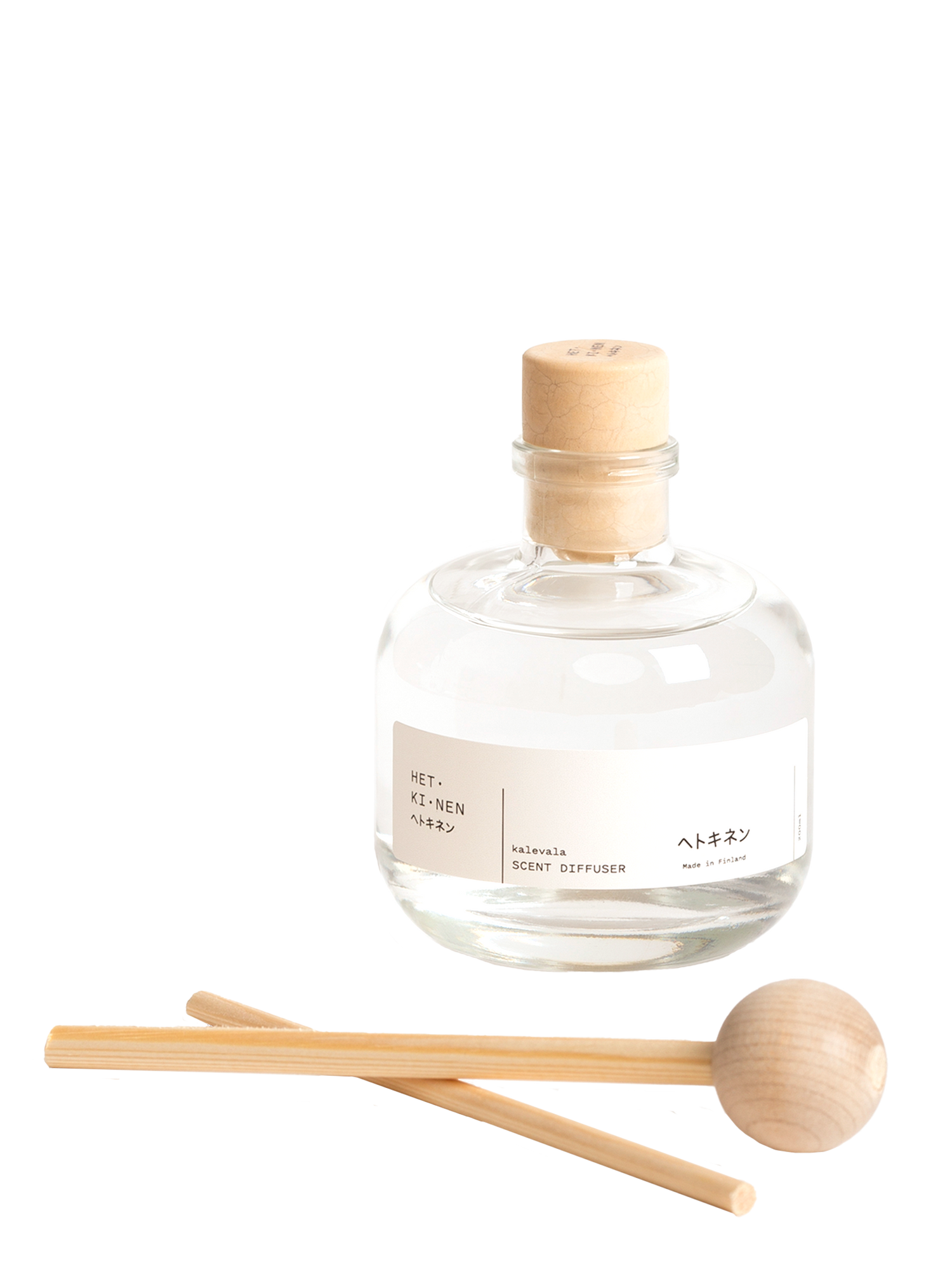 《卡勒瓦拉》是芬蘭19世紀的民族史詩作品。這首敘事詩在芬蘭人的心中佔有特殊的地位。《卡勒瓦拉》中的詩歌講述了生活、日常生活、慶祝活動和歷史事件的各個方面的故事。卡勒瓦拉是芬蘭文化的基石,它創造了對生命和存在的理解。這是一件意義重大且具有像徵意義的作品,Hetkinen將其變成了一款室內擴香瓶。
