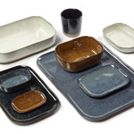 我們最喜歡的就是創造出各種盛載小吃的器皿,讓您時刻與家人和朋友分享。 為了滿足這些需求,Merci創作了一系列小吃器皿,靈感來自Russel Wright著名的“ American Modern Dinnerware”和日本的 “ bento”。 該系列由砂岩和楓木製成,有四種不同的顏色,設計成由十二種元素組成的拼圖,可根據需要堆疊或裝配在一起。 其餘的取決於您!