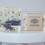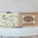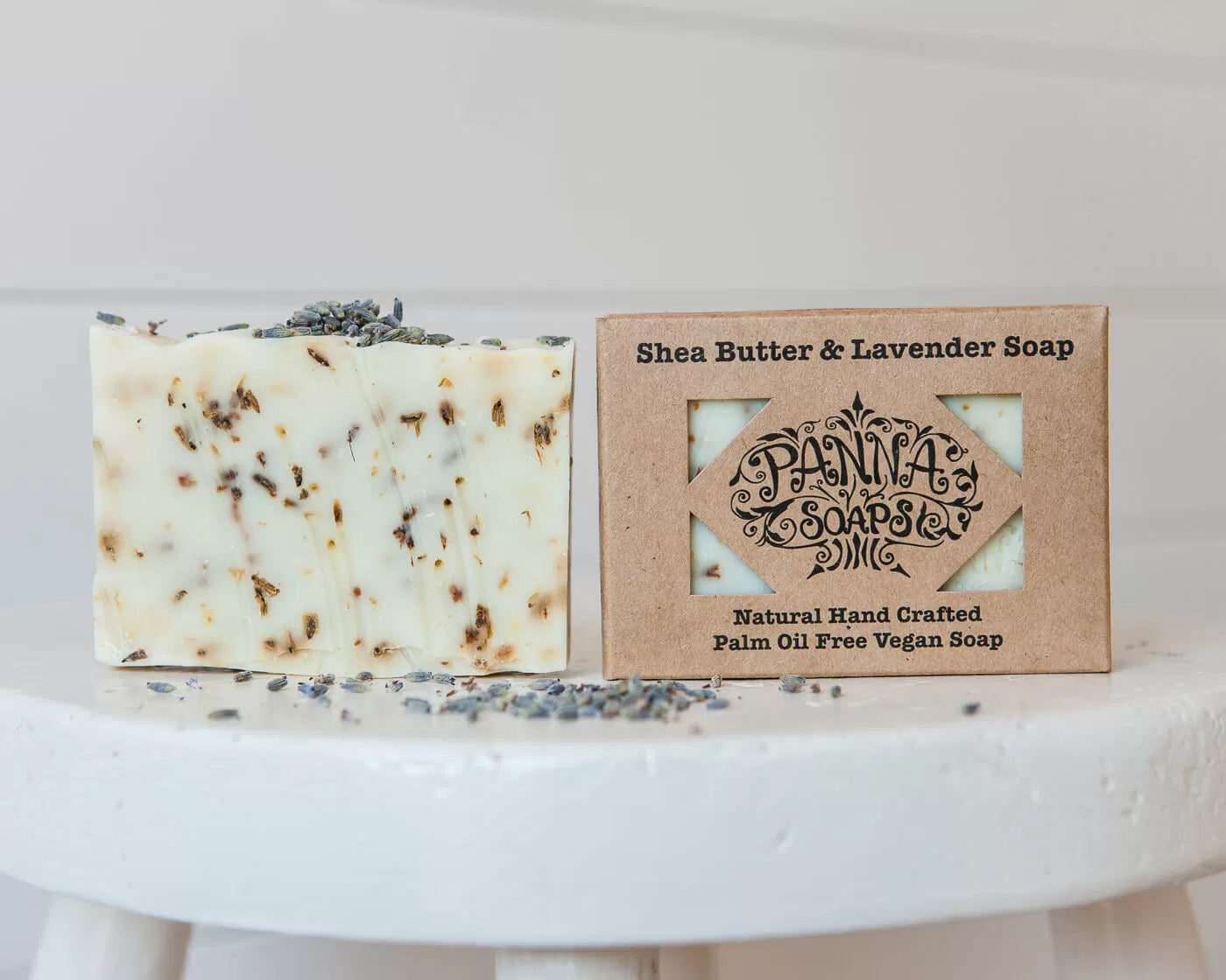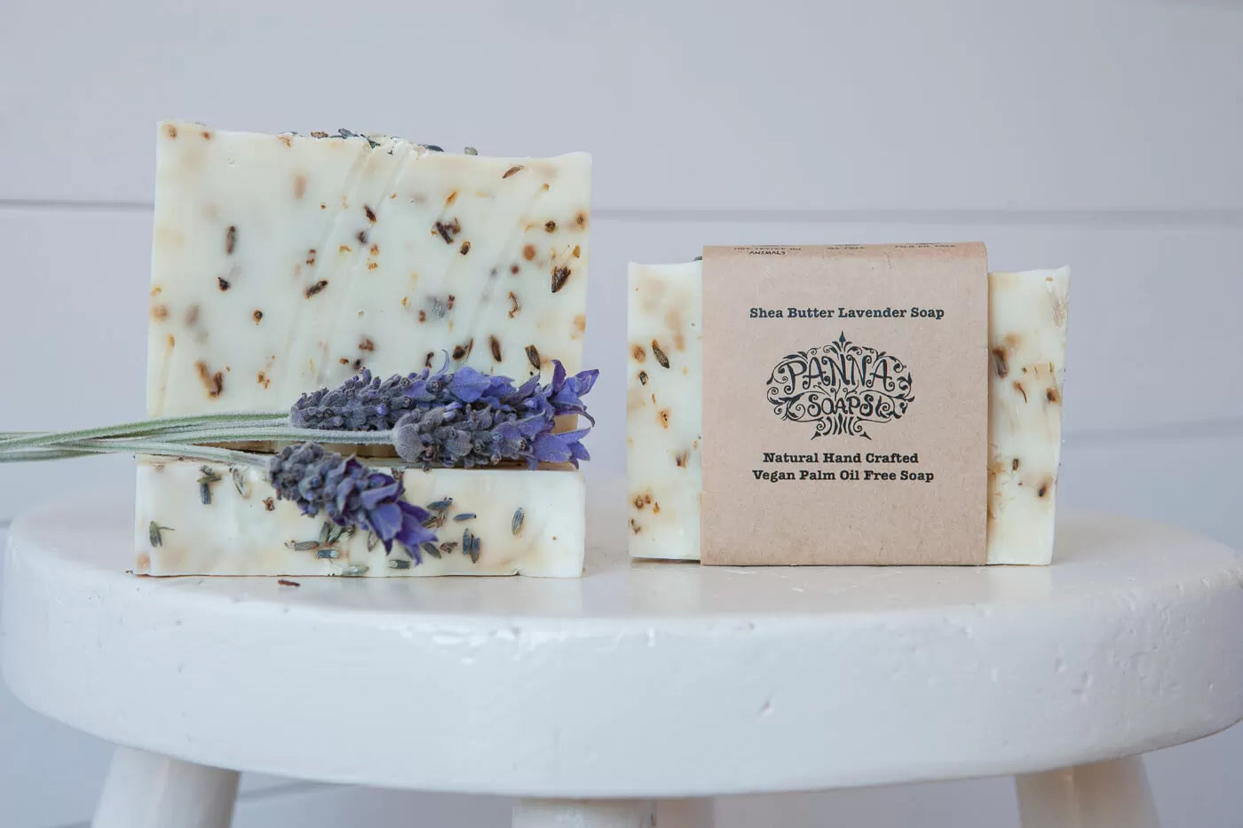 橄欖油、椰子油、乳木果油、水、蘇打鹼液、乾燥薰衣草花、薰衣草精油