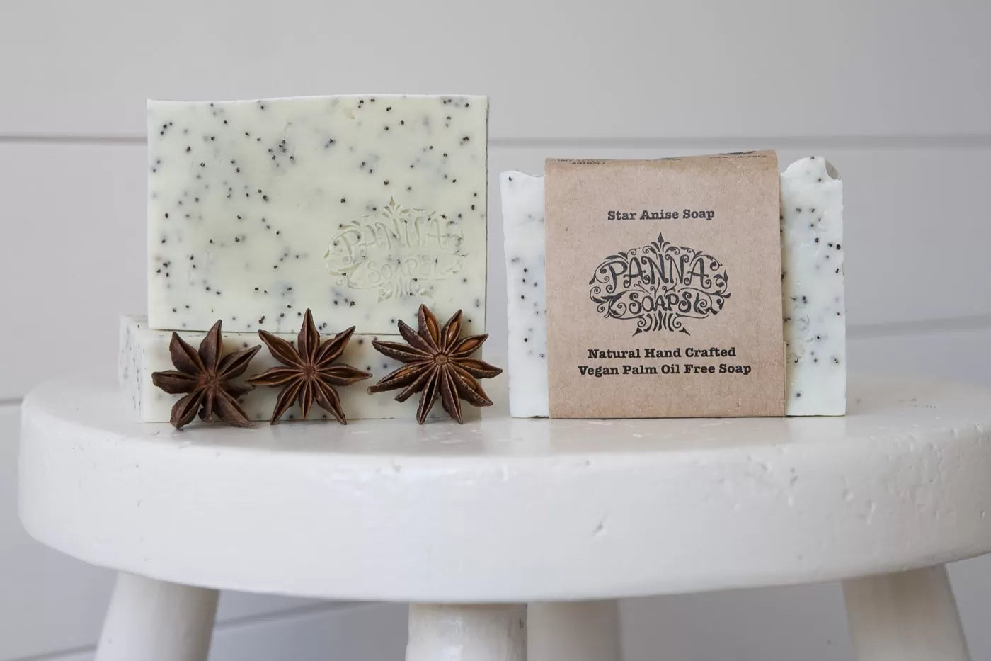 橄欖、椰子和酪梨油、水、蘇打鹼液、罌粟種子、八角茴香精油