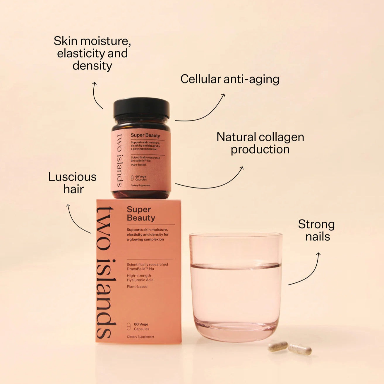 小貼士:Super Beauty可單獨使用,或與 Two Islands的 海洋膠原蛋白|美容營養補充品 完美搭配,真正增強您的美容程序。