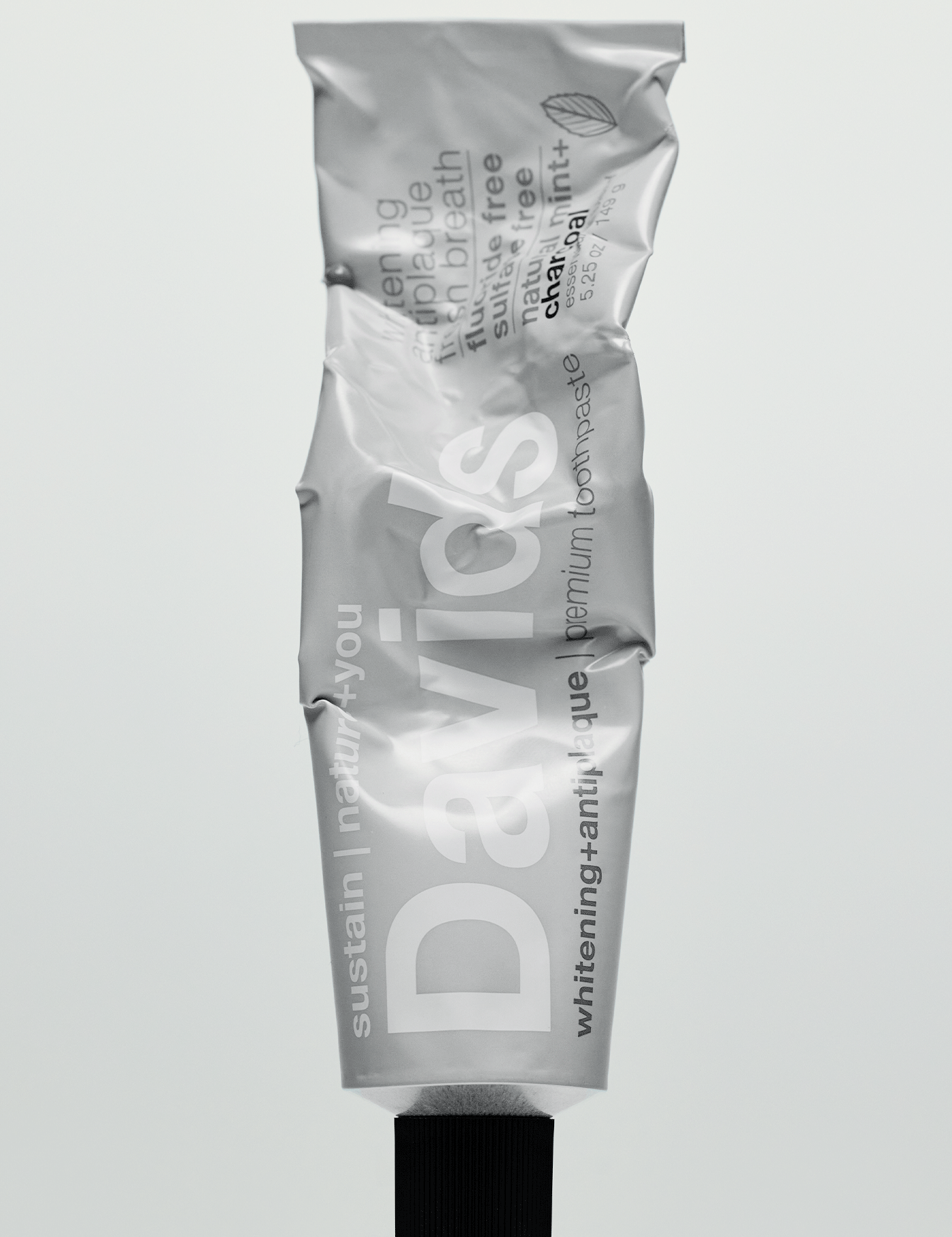 碳酸鈣(石灰石磨料)、純水、碳酸氫鈉(小蘇打)、植物甘油、水合二氧化矽、木糖醇(樺木衍生)、椰子油、活性碳、卡拉膠(海藻萃取物)、椰油醯麩胺酸鈉、薄荷胡椒薄荷油、留蘭香葉油、茴香籽萃取、冬青葉油、甜菊(葉萃取物)