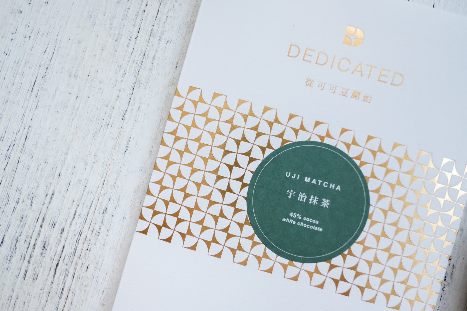 用上京都宇治出產的高品質抹茶粉,茶味清雅不澀。朱古力呈現出漂亮的墨綠色,顯示了抹茶粉佔了高的比例。因為只用了可可油,所以歸類為白朱古力類別。
