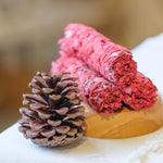 龍血是一種抵禦負能量的能力而聞名和保護樹脂,以及幸運、愛、淨化和勇氣,被添加到鼠尾草束中以幫助增加它們的效力和力量。 Dragon's Blood 有助於為其提供額外的保護和清潔,使其成為非常獨特的套裝。 龍血樹脂也是可持續收穫的。 將樹脂磨成細粉,與水混合,然後將成束浸入樹脂中乾燥。